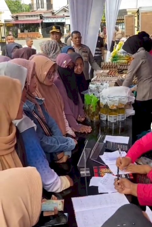Sejak pagi hari, masyarakat terlihat memadati lokasi kegiatan di Mako Polres Pasaman Barat untuk memanfaatkan kesempatan membeli kebutuhan pokok dengan harga terjangkau.