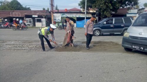 “Kami tidak ingin menunggu sampai terjadi kecelakaan. Ketika melihat kondisi jalan yang membahayakan, kami bersama personel berinisiatif melakukan penimbunan sementara agar permukaan jalan lebih aman dilalui,” ujar Kapolsek di sela kegiatan.