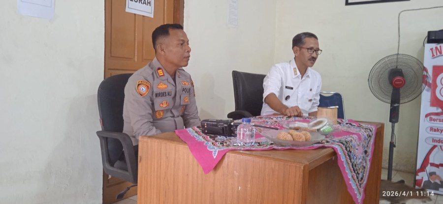 Suasana pertemuan berlangsung hangat dan penuh keakraban, mencerminkan semangat kebersamaan antara aparat pemerintah, kepolisian, dan masyarakat dalam menjaga stabilitas serta keamanan lingkungan.