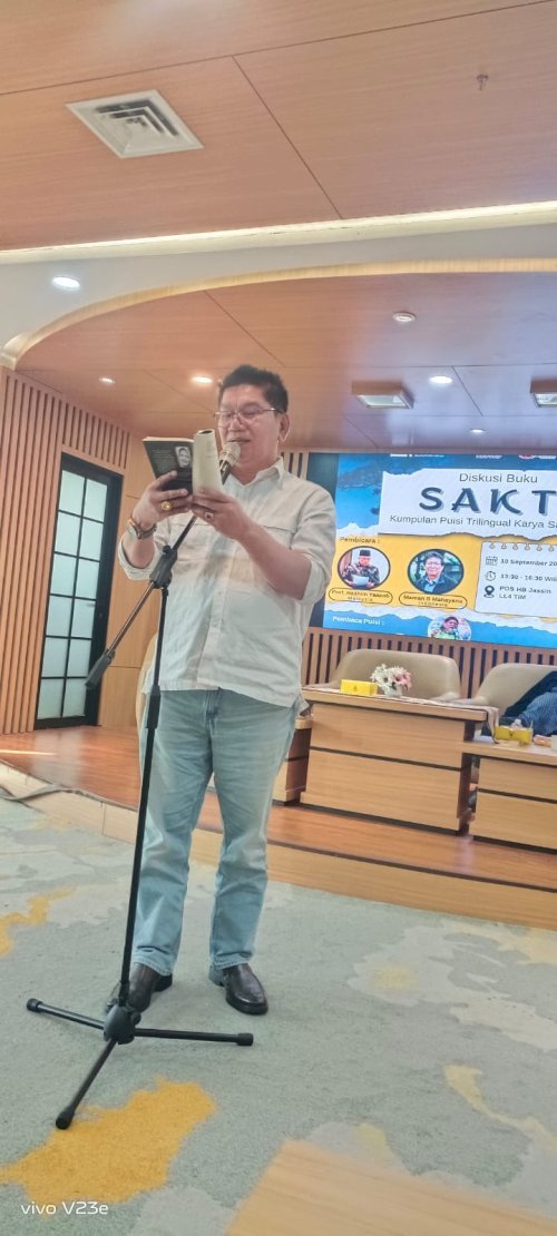 JAKARTA,Pekatnews.com (11/09/2025) Budayawan, Sastrawan dan Pegiat kesenian Sumatera Barat Sastri Bakry meluncurkan dan diskusi buku puisi tiga bahasa yakni Indonesia, Inggris dan Spanyol di Taman Ismail Marzuki (TIM) PDS HB Jassin Jakarta Pusat, Rabu (10/9/2025).