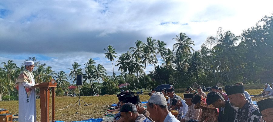 Saat pelaksanaan shalat Istisqa berjalan dengan khidmat dan tampak masyarakat Galogandang memenuhi lapangan Sawah Darek serta ada sebagian warga membawa hewan ternaknya ke lapangan.(Rzl).