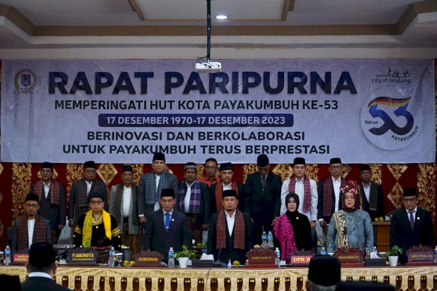 PEKATNEWS.COM– Peringatan Hari Jadi Kota Payakumbuh melalui Rapat Paripurna DPRD yang digelar setiap tahun, merupakan bentuk kecintaan dan kebanggaan kita bersama kepada Kota Payakumbuh. Dalam rangka memperingati HUT Kota Payakumbuh yang ke 53, DPRD Kota Payakumbuh menggelar rapat Paripurna yang berlangsung di Gedung DPRD Kota Payakumbuh, Minggu 17 Desember 2023..