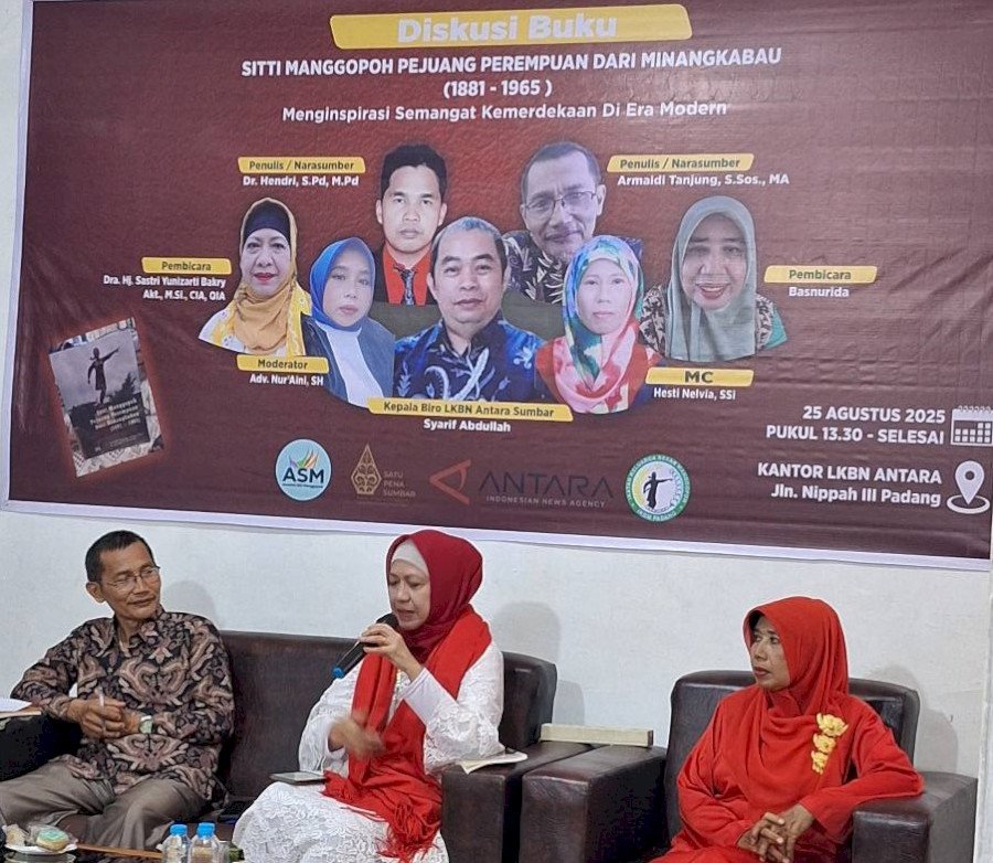 Demikian terungkap pada Diskusi Buku “Sitti Manggopoh Pejuang Perempuan Dari Minangkabau (1881-1965)”, Senin (25/8/2025) di aula LKBN Antara Biro Sumbar, Padang.